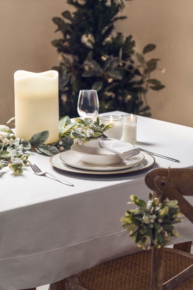 Take care of all the details. If to decorate your Christmas table you have chosen mistletoe branches between the plates and even for the individual napkin ring, also note the detail of putting some twigs hanging from each chair. Your guests will be surprised.