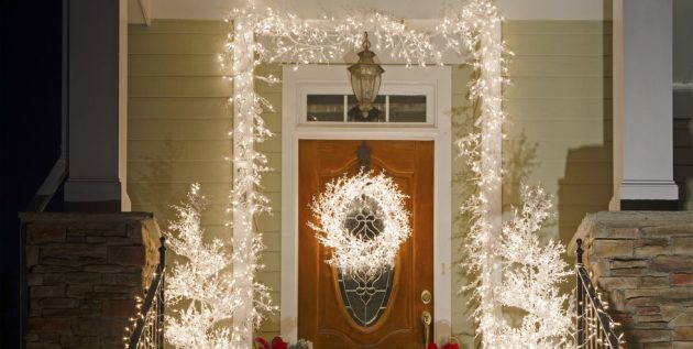 If you are obsessing over the look of Christmas lights on your front door, then you should definitely go for a classic feel by illuminating the door with warm icicle lights.