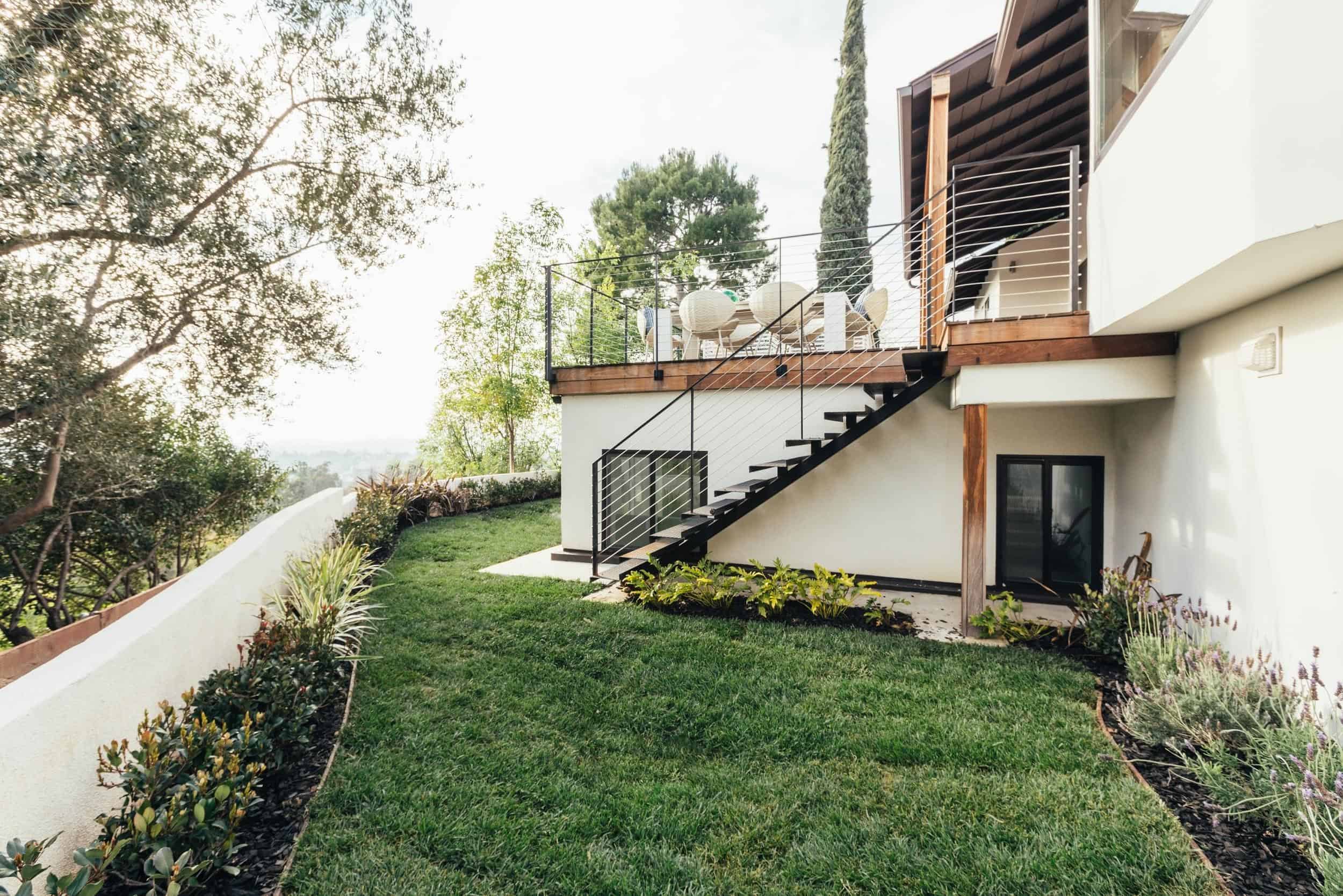 Along with creating a sleek design and modern look, comes the deck and/or stair railing. The railing is a crucial element of your indoor/outdoor spaces overall design and how you use it is of utmost importance. When trying to create the illusion of the indoors being out or vice versa, you want clean and simple, an option that doesn’t distract or obstruct the surrounding beauty. Another tip is to use the same railing on the inside staircase, as you would on the deck railing like we did here. It really blends the two spaces and makes for a more cohesive indoor/outdoor experience.