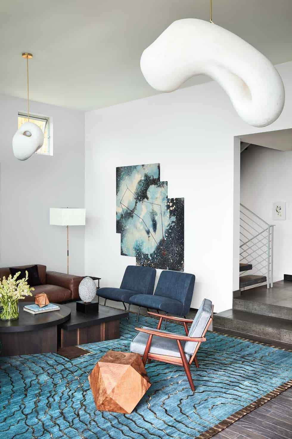 This living room features a Moroccan rug that catches the vibe of a fun, very alive in spirit and wild home.