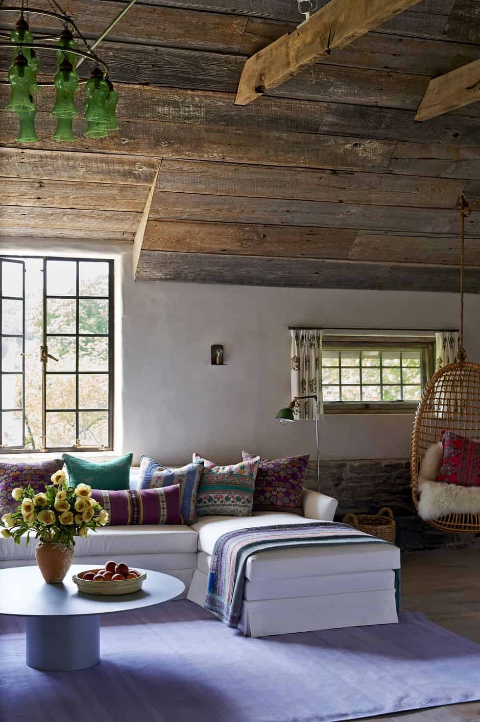 *The seating area feels quiet royal thanks to the antique chairs and the decadent velvet couch.