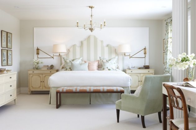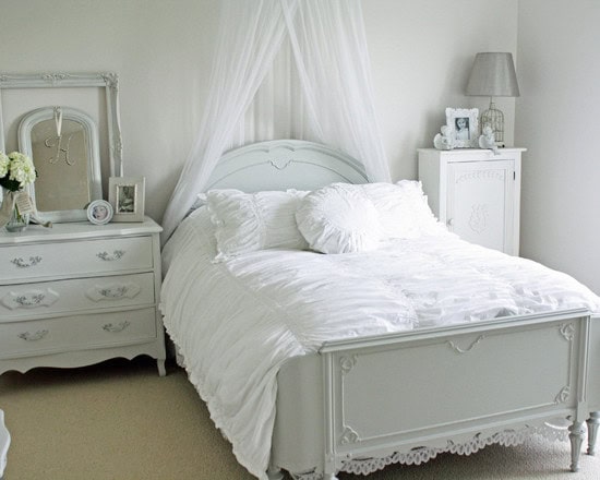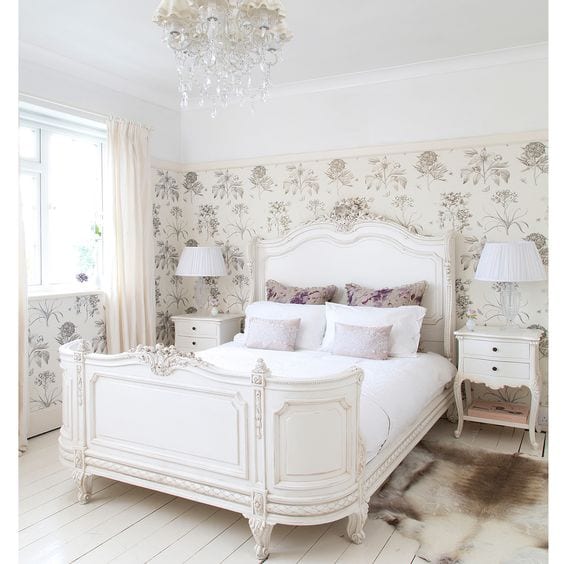 In antique shops you can find carved bedside tables, chests and cabinets with gold and baroque embellishments. Place a large mirror on the wall, because it will visually enlarge the space. If you have space, you certainly need make the reading corner, with a coffee table and two comfortable armchairs. In our collection below you can see many fascinating examples of white French bedroom designs, that surely will catch your eye. Take a look below, and i find idea how to decorate the bedroom of your dreams!