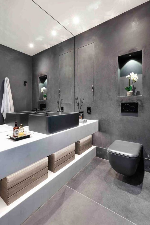This is the best way to make a toilet functional and beautiful. With a well-designed design, custom-made furniture makes the decorated toilet a beautiful and well thought-out environment for use. Here come the cabinets, the mirrors, the hanging cabinets, sinks and even the door.