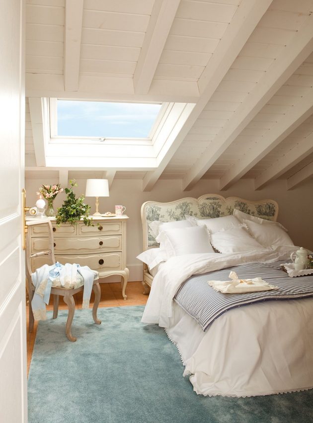 As small as it is cozy and charming. This is how this attic bedroom is, in which wood has been chosen, but in white, to decorate it. The contrast note? The beams in natural finish.