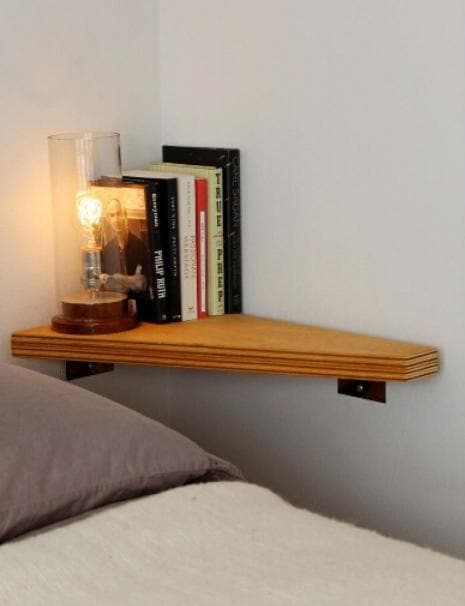 10.Interesting little floating corner shelf that can be pinned above your bed and hold a reading light and books. But beware of its distance with your pillow; don’t let it bump your head.
