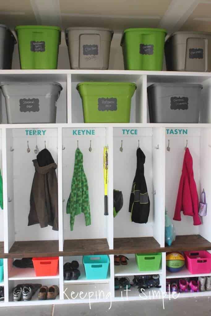 2. DIY GARAGE MUDROOM LOCKERS WITH LOTS OF STORAGE