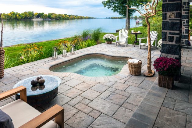 Don’t limit your water features to your pool alone. Install a waterfall or fountain in the shallow end of your pool. You could also take on some of the dead space in the yard that surrounds your pool to install a fountain or decorative spout.