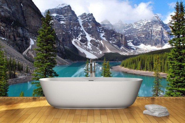 You does not have to put wall murals on all the walls. You can choose the walls that should be noted, for example wall near the sink or another. The only rule that should be respected is, just around the areas that are much exposed to water should not be placed the wall murals, beside the good adhesives and good wallpaper. They’re just not foreseen for quite extreme conditions. See some creative ideas and maybe you will find solution for your dream bathroom.