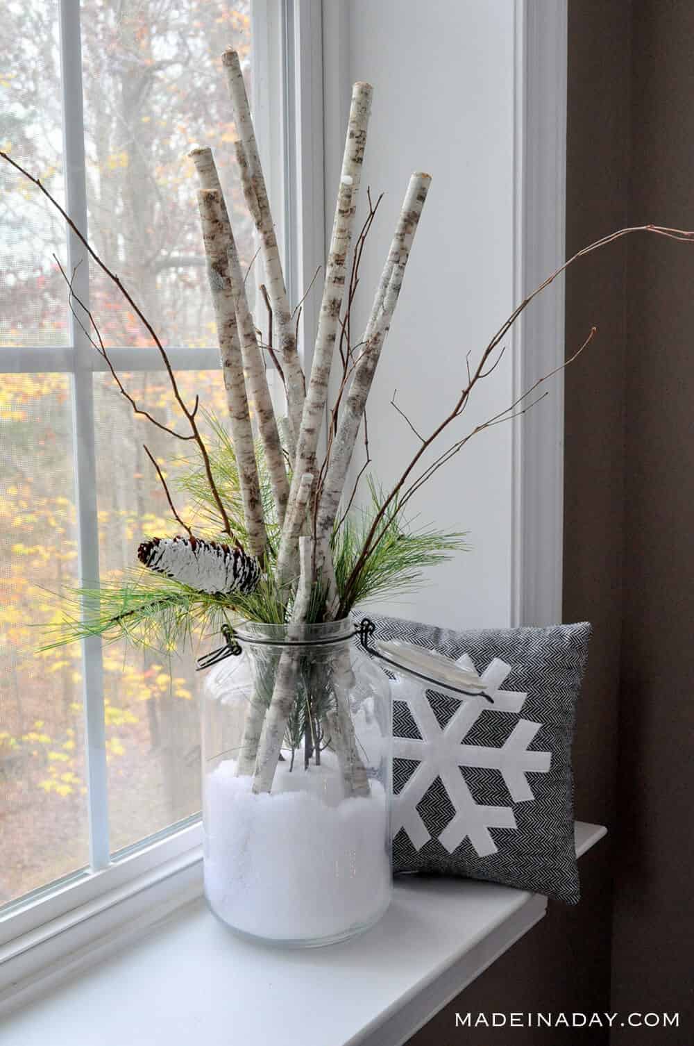 10. Sweet Snow Day in a Jar Birch Branch Arrangement