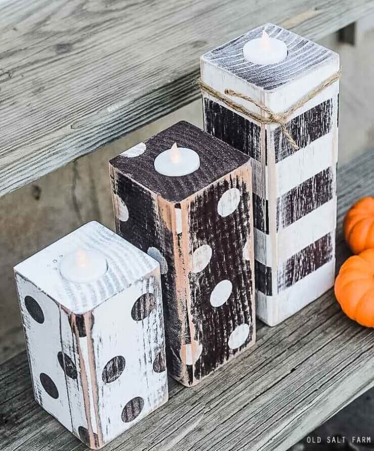 12. STRIPED & POLKA DOT FALL WOOD CANDLESTICKS