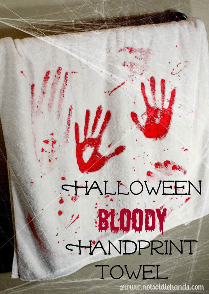 14. Bloody Hand Print Towel DIY Halloween Party Decor