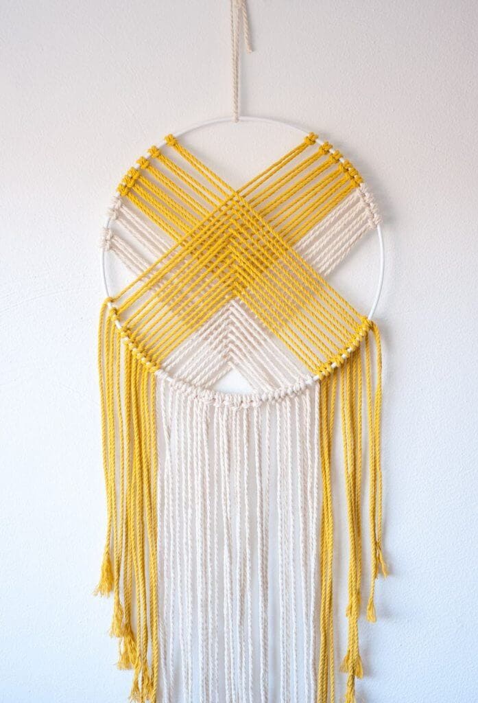 9. Modern Mustard and White Macramé Dreamcatcher