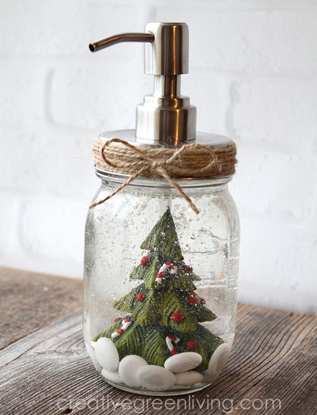 11. Dollar Store Mason Jar Snow Globe Soap Dispensers
