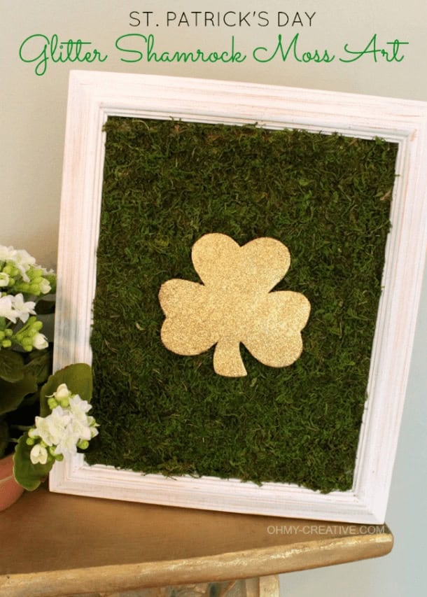 12. ST. PATRICK’S DAY GLITTER SHAMROCK MOSS ART