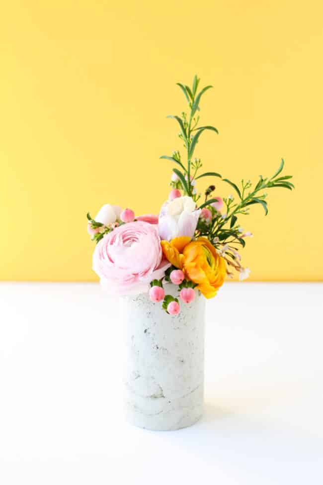 11. MAKE A DIY VASE WITH CONCRETE AND A MAILING TUBE