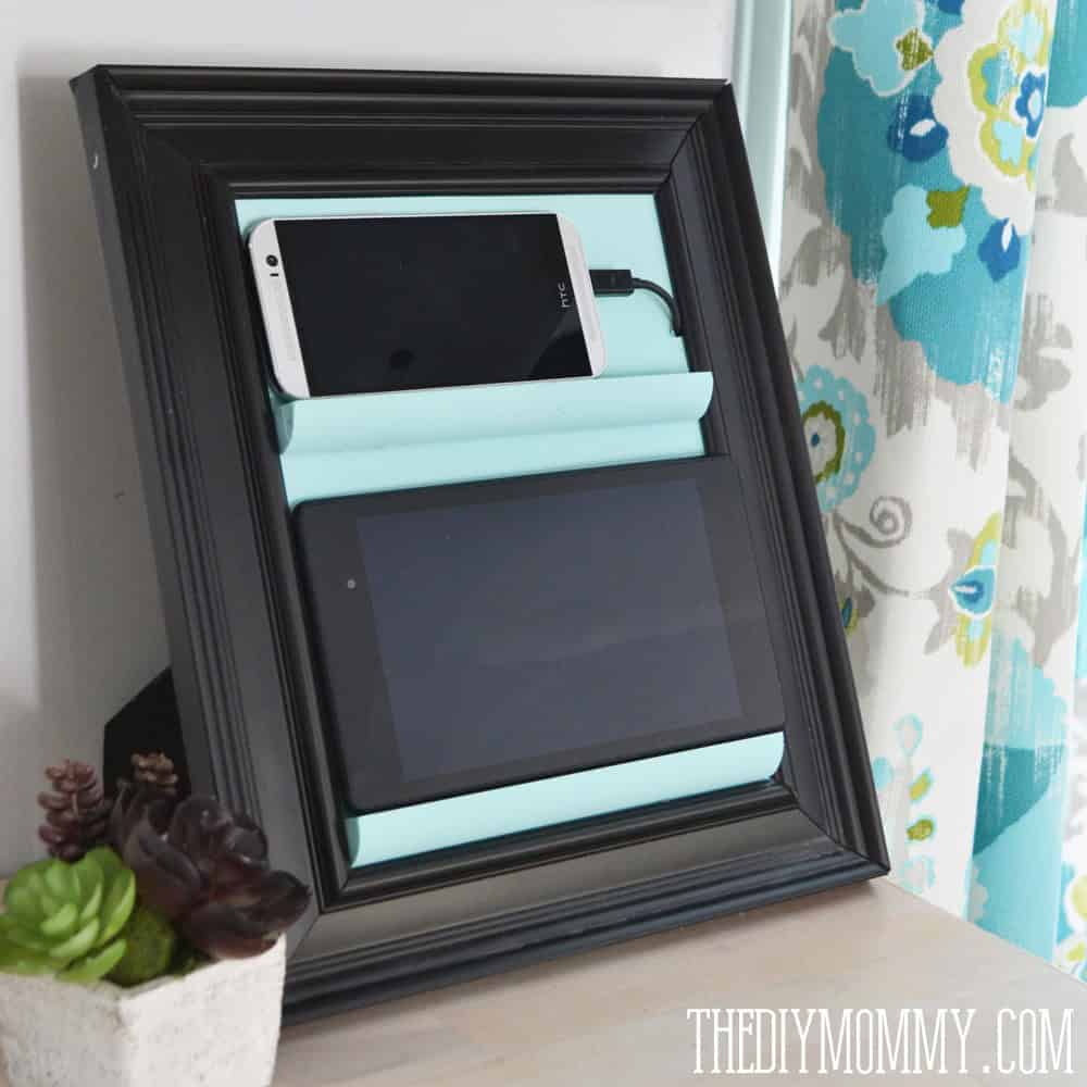 15. MAKE A COUNTER TOP PHONE CHARGING STATION & TABLET HOLDER FROM A PICTURE FRAME