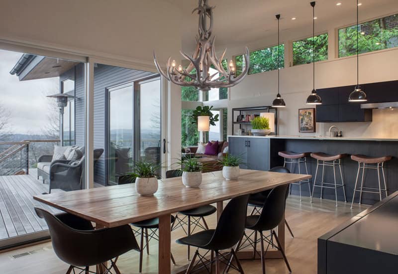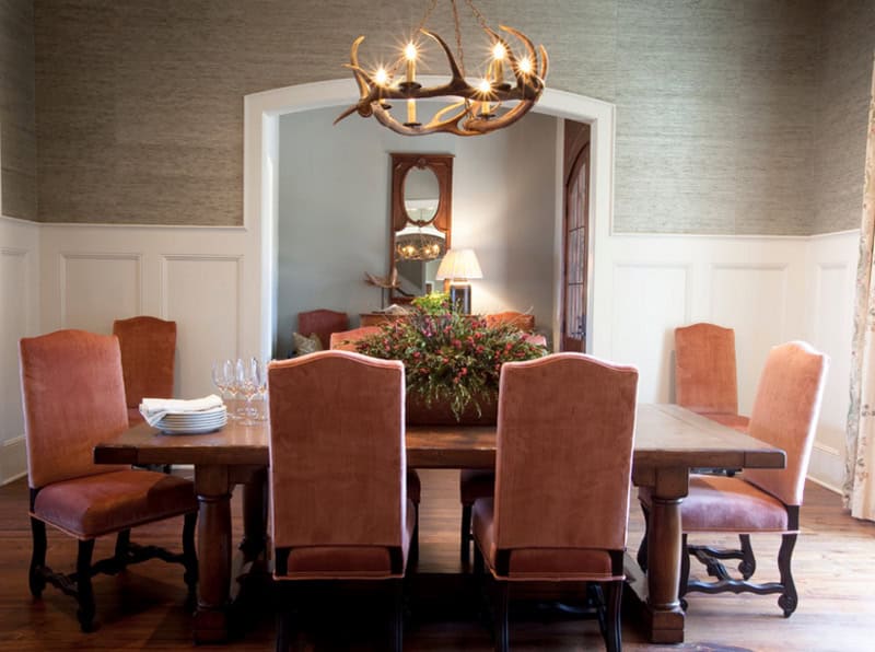 Central lighting is ideally to be placed right above the middle of the table. If it is a chandelier with several separate lighting units, then the medium had to be above the middle of the table. Today, there are many many kind of chandeliers, you just need to find that one that will fit the rest of the interior in the dining room. If you are still in doubt what kind of chandelier to choose for your dining room, we present you one collection of some charming dining room design with antler chandeliers. All of them are beautiful, and abound with elegance and warmth. Now take a look at our collection and you might find inspiration for choosing the best antler chandelier for your dining room!