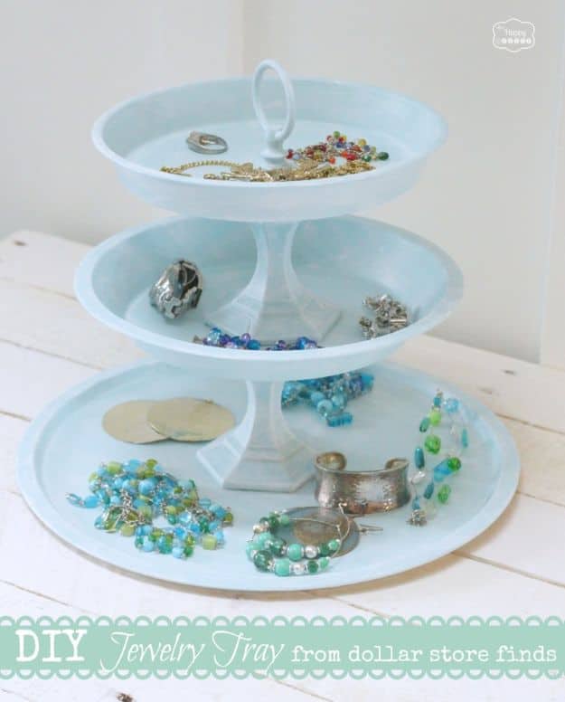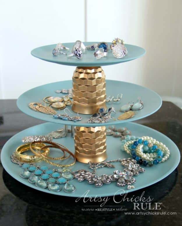 13. DIY Tiered Jewelry Tray From Dollar Store Finds