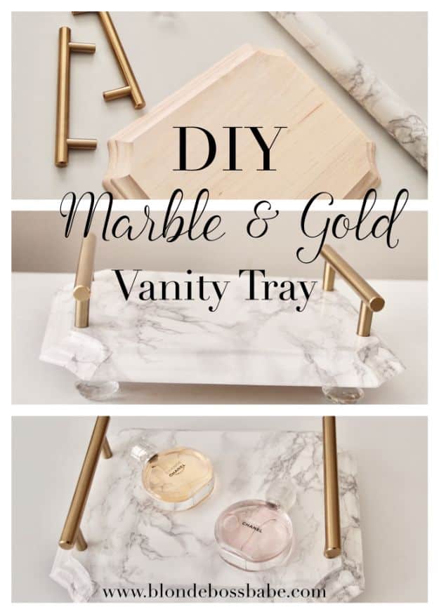 12. DIY Marble & Gold Vanity Tray
