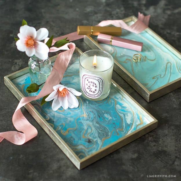 3. Marbled DIY Vanity Tray Idea
