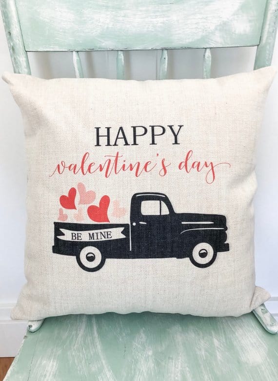 6. Happy Valentine’s Vintage Truck Pillow Cover