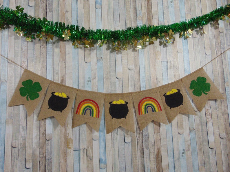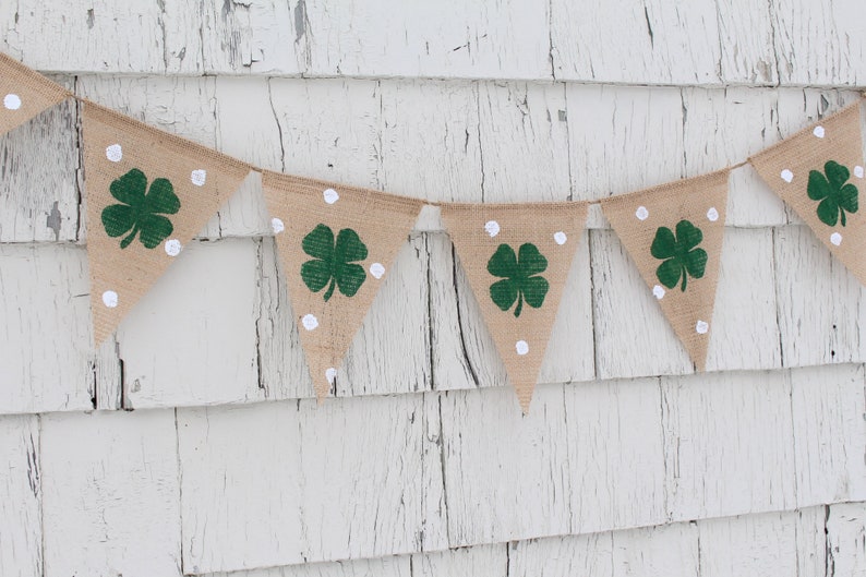 Take a look at this new compilation of festive decoration ideas in which you’re going to see 15 Charming St. Patrick’s Day Bunting Designs You’ll Love. There are so many ways you can decorate your home with banners and garlands. First of all, you can hang one across the fireplace mantel, usually a minimalist garland works best here. Additionally, you can create a photo corner with a lucky banner as a backdrop. Enjoy!