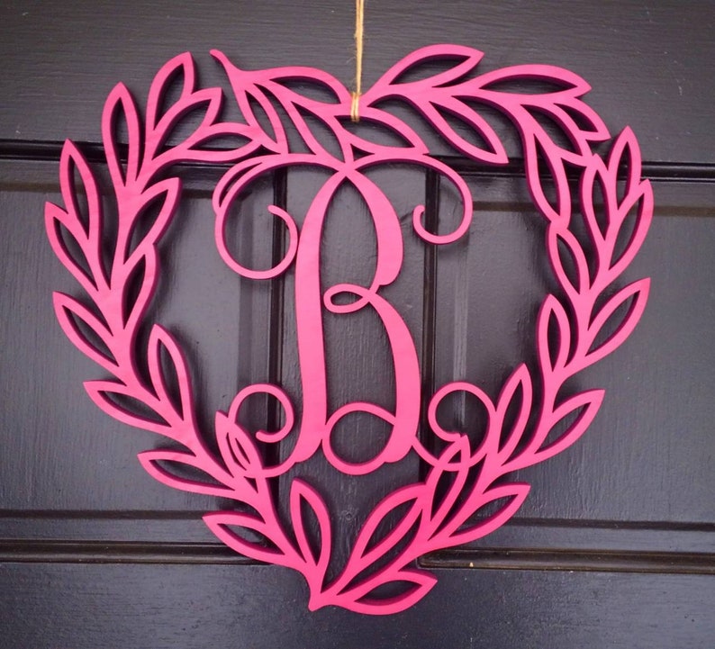 10. Laurel Heart Monogram Door Hanger