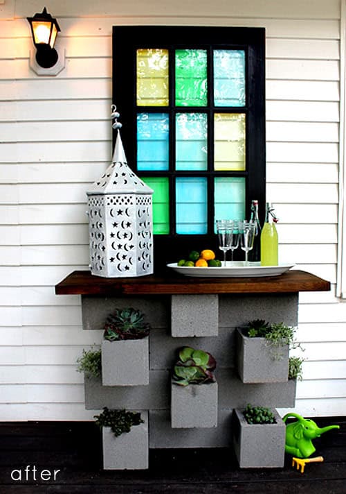 2. Cinder block planter bar