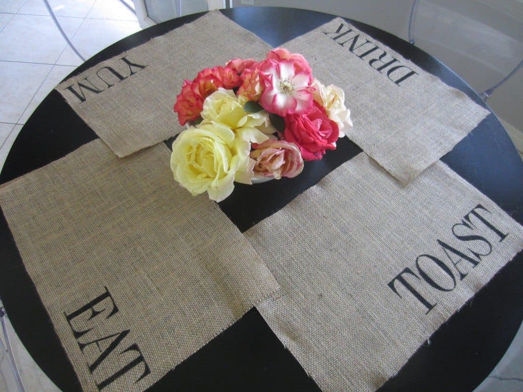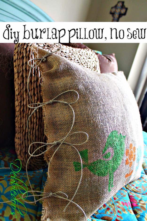 9. No Sew Burlap Pillow Stenciled With Fabric Markers