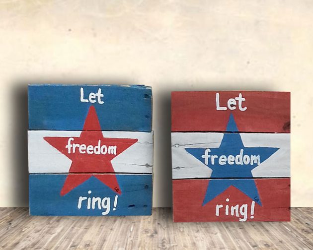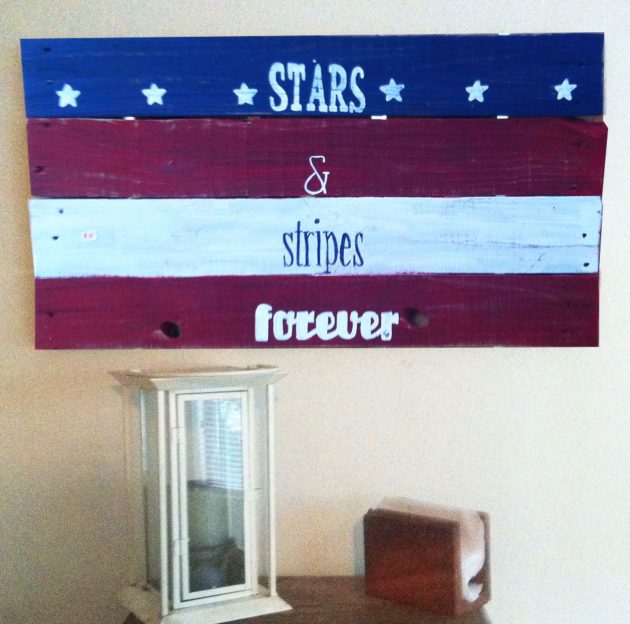 3. Make a Stars and Stripes Sign out of pallet or reclaimed wood for no cost at all