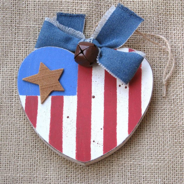 9. Show your love for your country by hanging creative little wooden heart ornaments