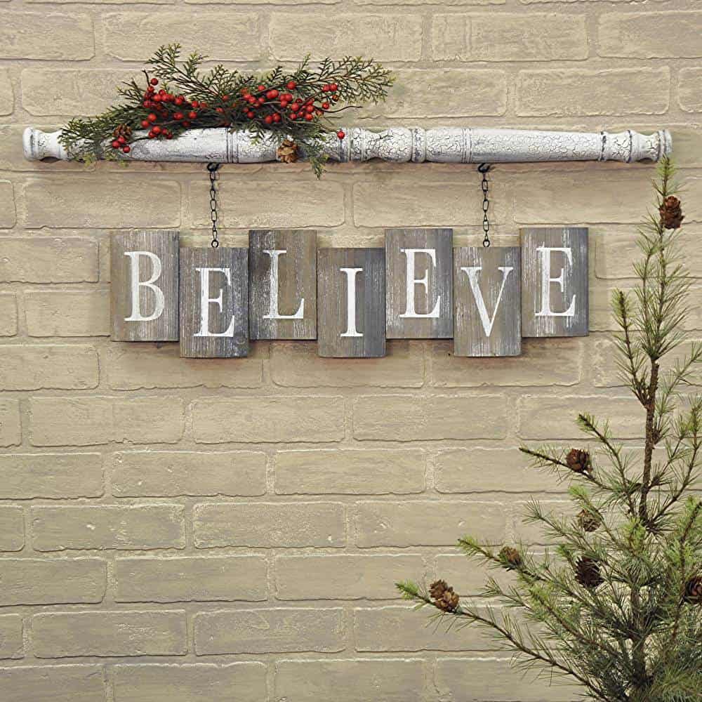 8. BELIEVE Barn Board Bricks with Spindle Wall Sign