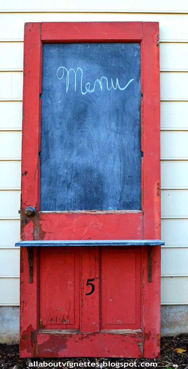 6. REPURPOSED VINTAGE DOOR INTO A CHALKBOARD MENU