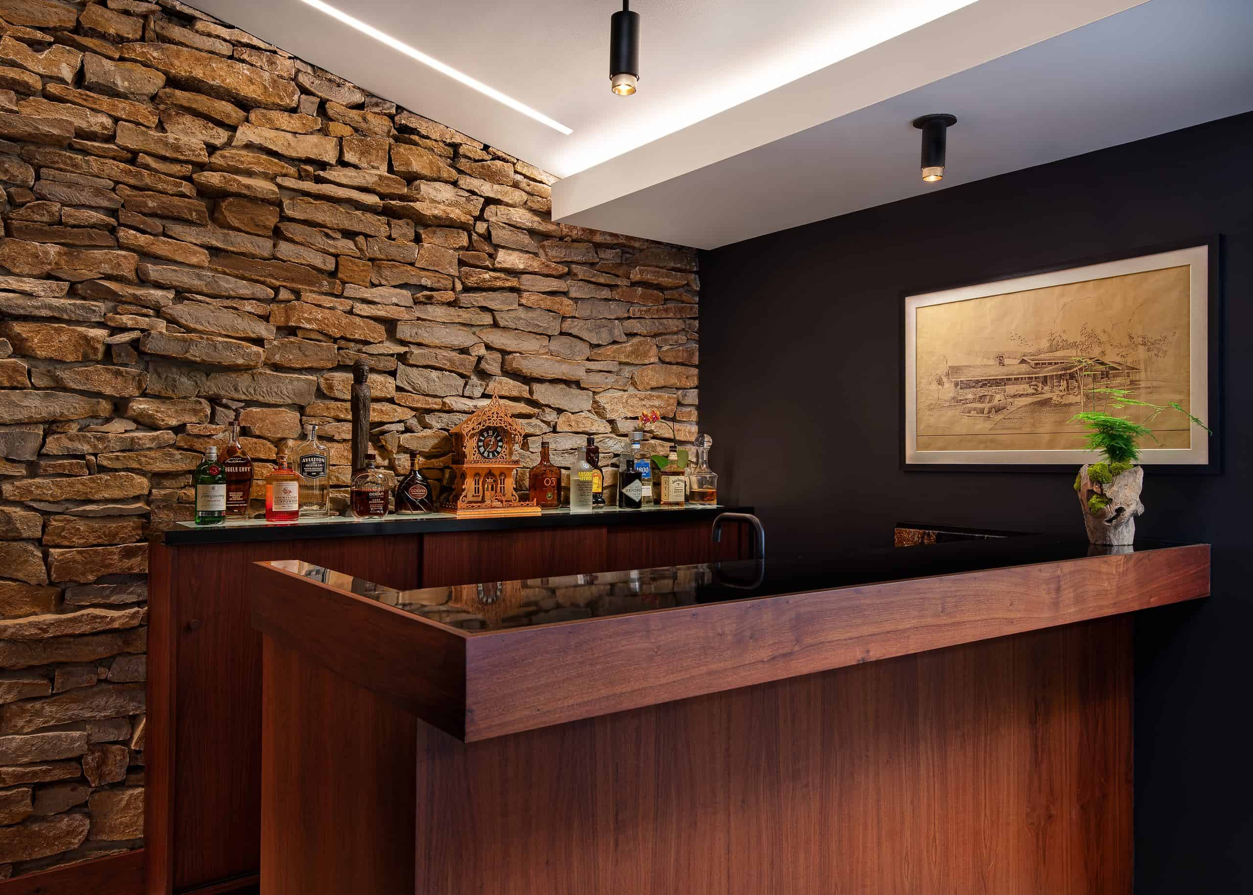 Adding personal touches to your midcentury home bar will make it feel uniquely yours. Consider displaying framed photos or mementos from memorable gatherings, creating a sense of nostalgia and warmth. You might also showcase a collection of vintage liquor bottles or a selection of your favorite spirits that reflects your taste.