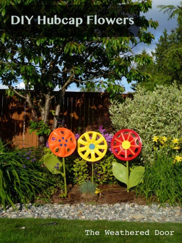 10. DIY Hubcap Flowers
