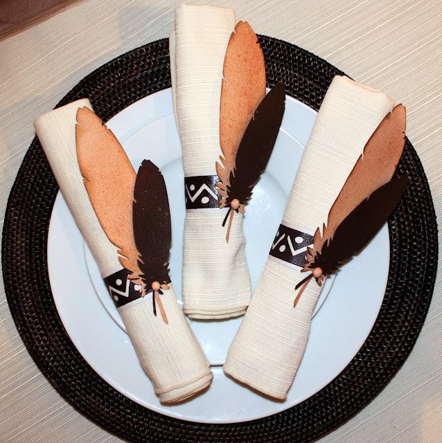 4. Centerpiece Paper Feather Thanksgiving Napkin Rings