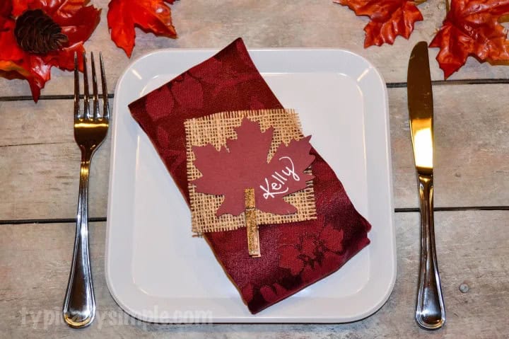 6. Burlap and Cardstock Leaf Place Cards