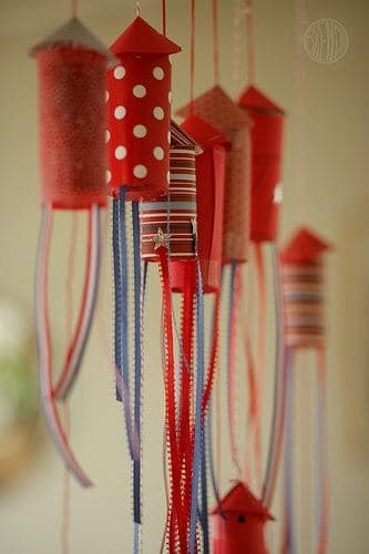 Go Americana chic! Wrap twine in red and white stripes for a festive garland. String it across walls, mantels, or patios for a pop of color. Upcycle rusty cans! Paint them red, white, and blue. Punch holes for twinkling stars and string them with fairy lights for nighttime magic. Repurpose old denim jeans into strips and string them with red and white ribbons or fabric scraps for patriotic flair.