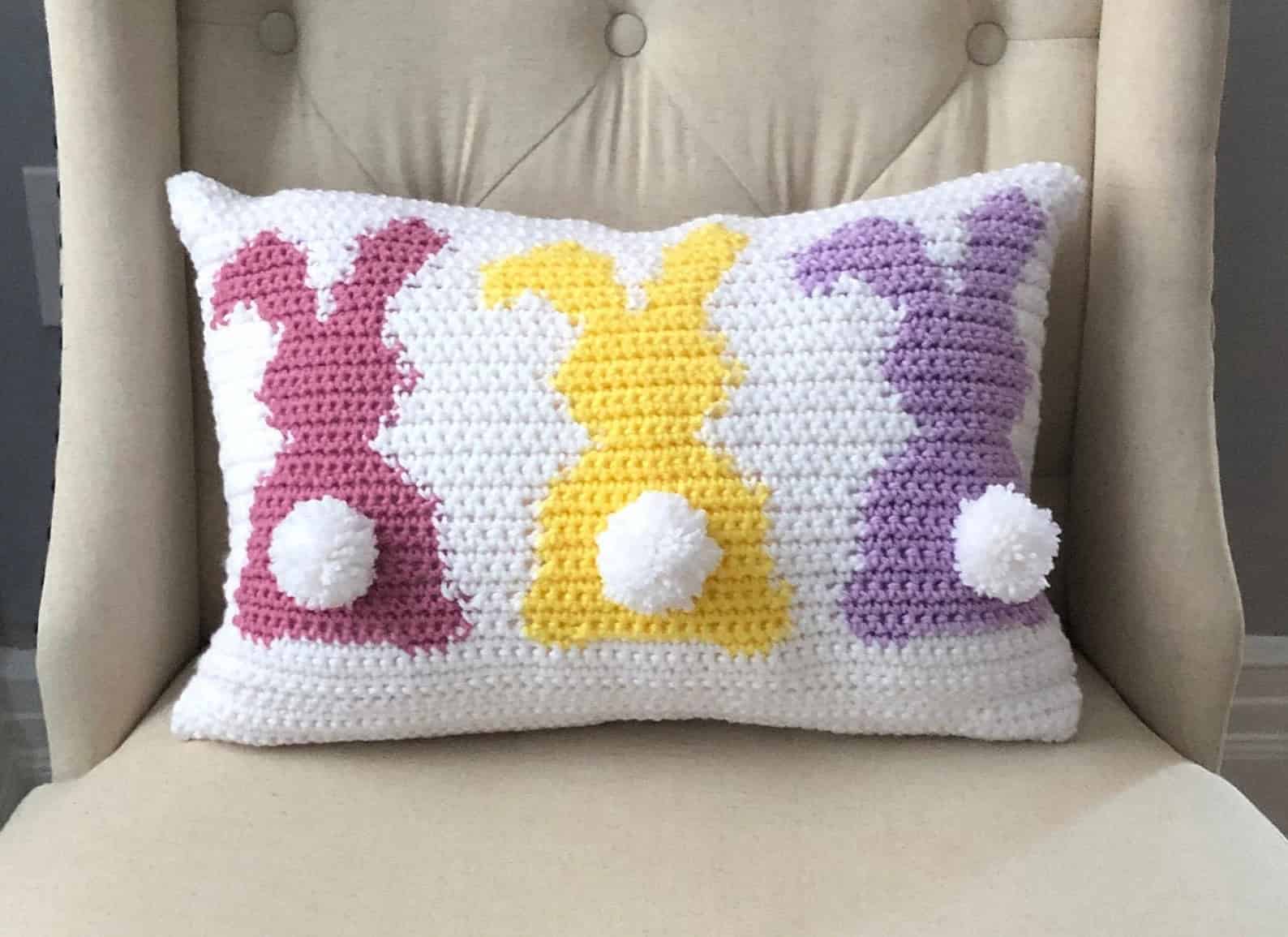 14. Fluffy Bunnies Crochet Pillow