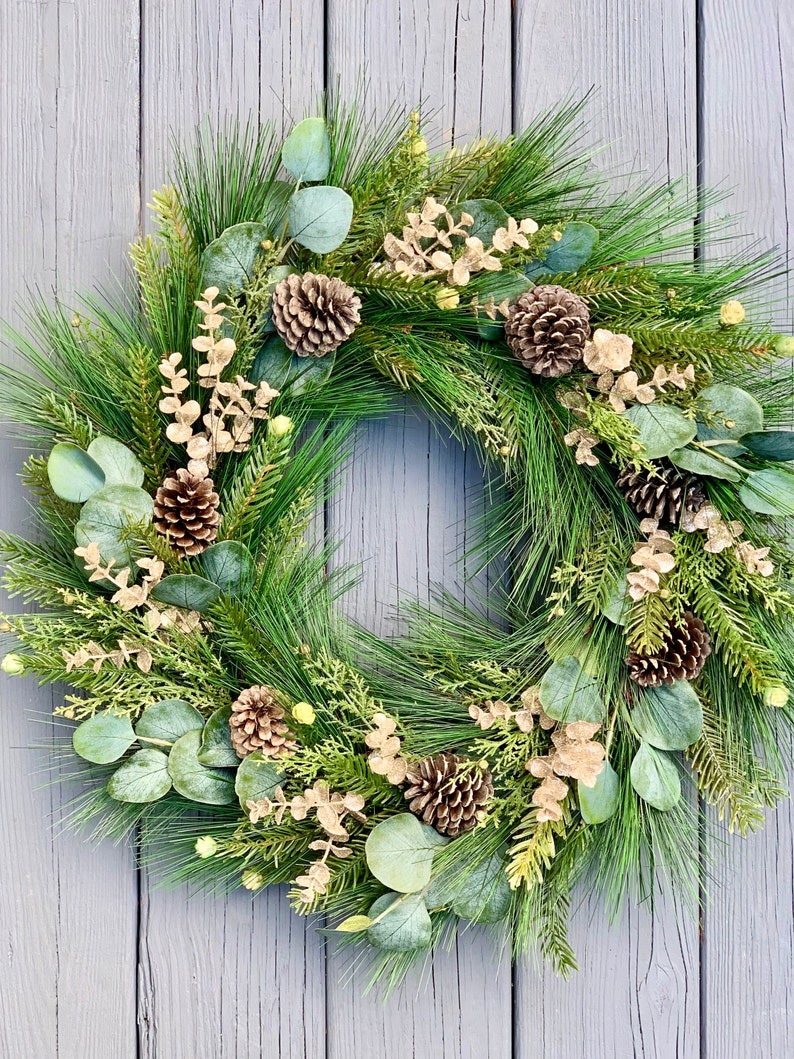15. Pine Eucalyptus Berries Pine Cone Wreath
