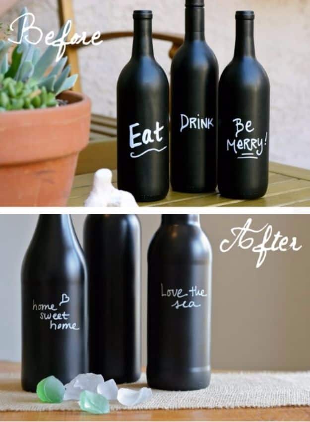 10. Easy chalkboard decor with old wine bottles