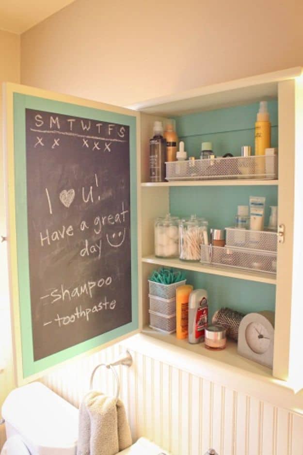 13. The inside of the medicine cabinet door can become useful with chalkboard