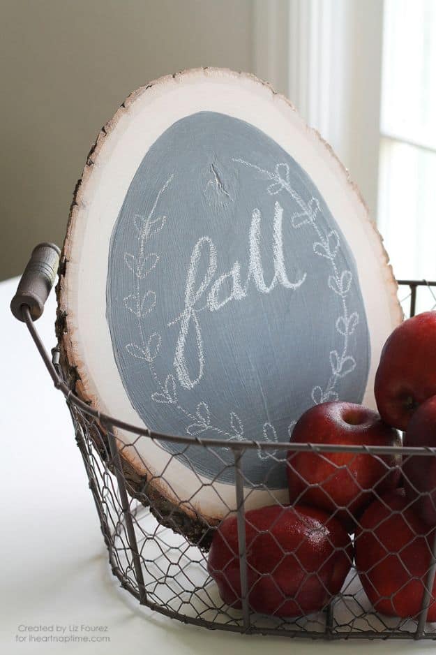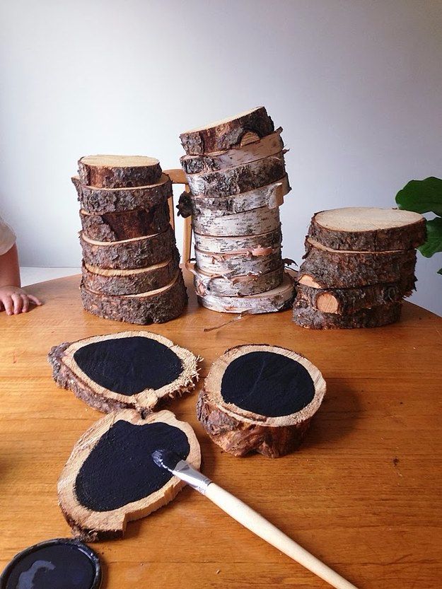 6. Slice a log and use the pieces to create free chalkboard coasters