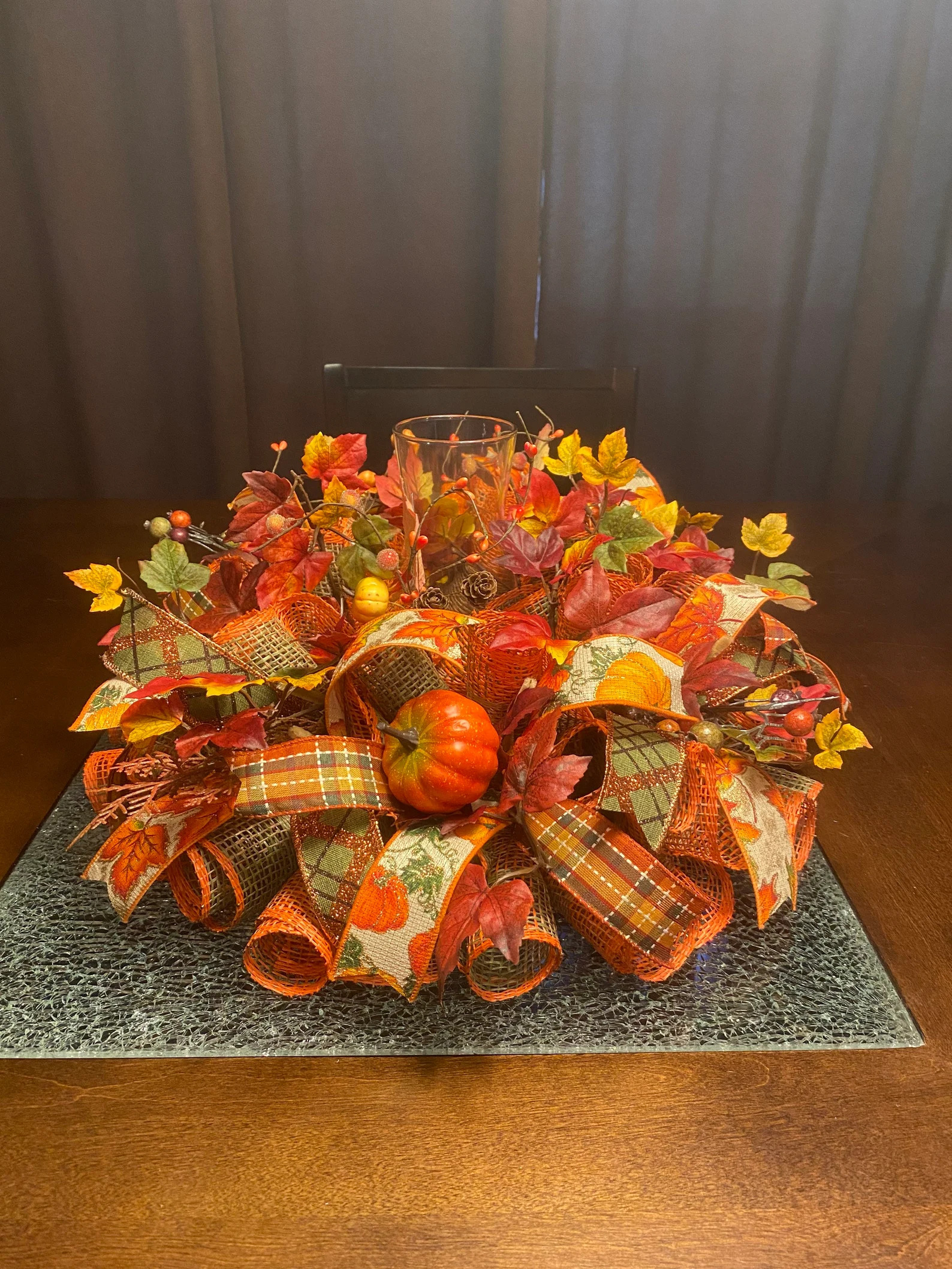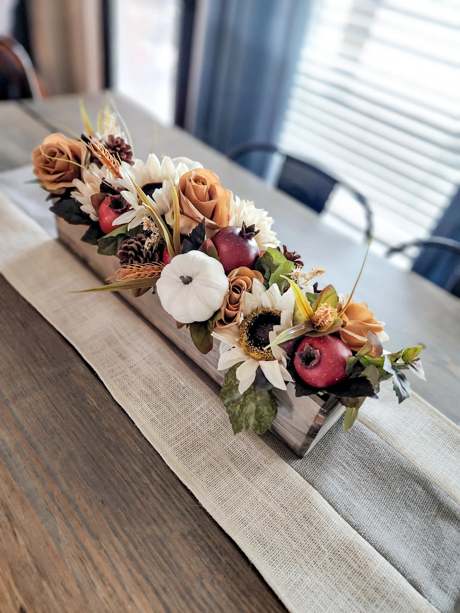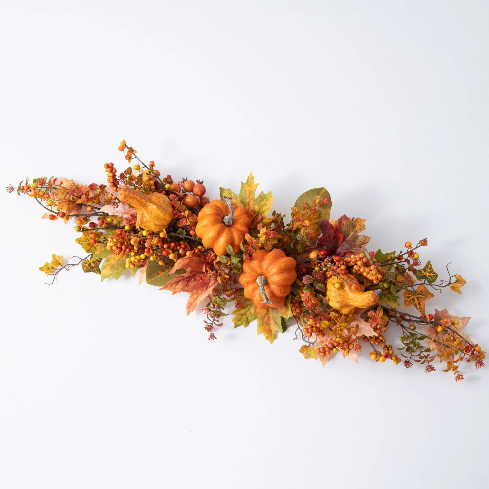 7. Pumpkin & Gourd Autumn Table Swag Arrangement