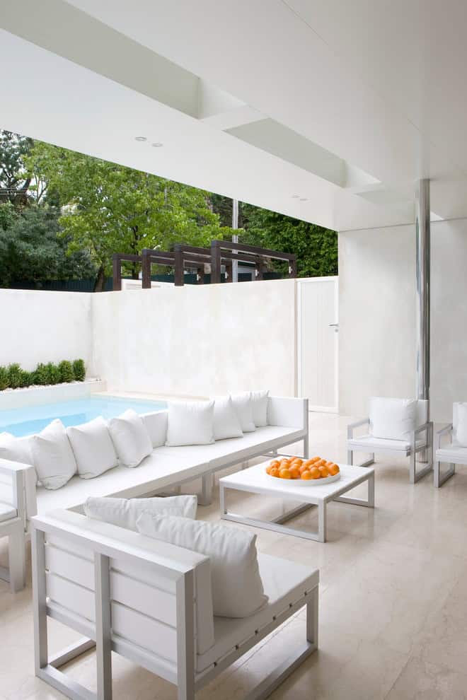 In this collection, we have featured modern patio designs which are all made in the most popular modern style that most new homeowners, or people who renovate their homes, choose nowadays. The reason this style is so popular is because it not only looks in touch with time, the simplicity of it’s design makes it look so elegant and luxury as well. All of those simple, straight lines and sharp edges, as well as the absence of accents and textures have a special effect on the overall look of the whole residence.