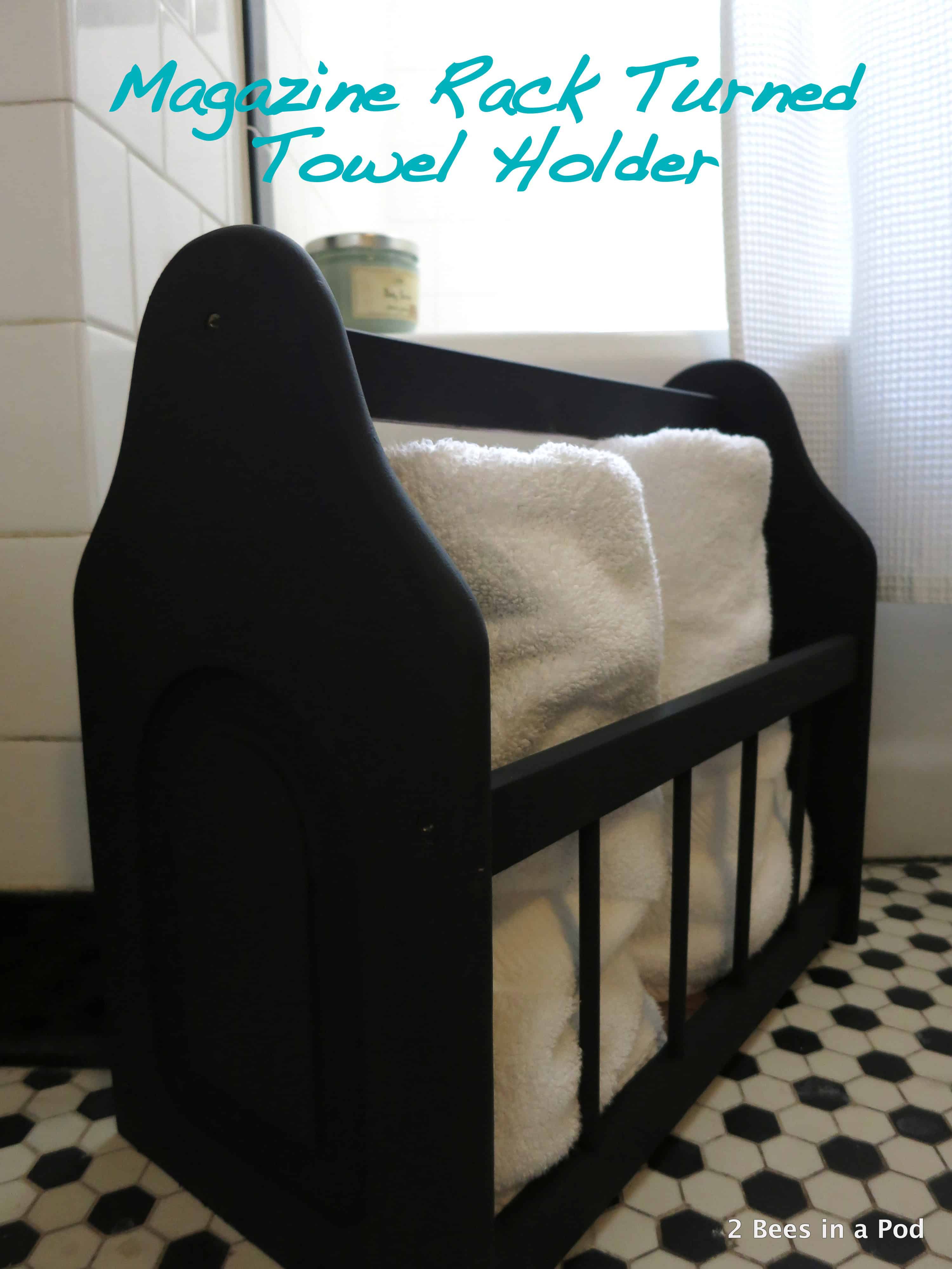15. Repurposed Magazine Rack Turned Towel Holder
