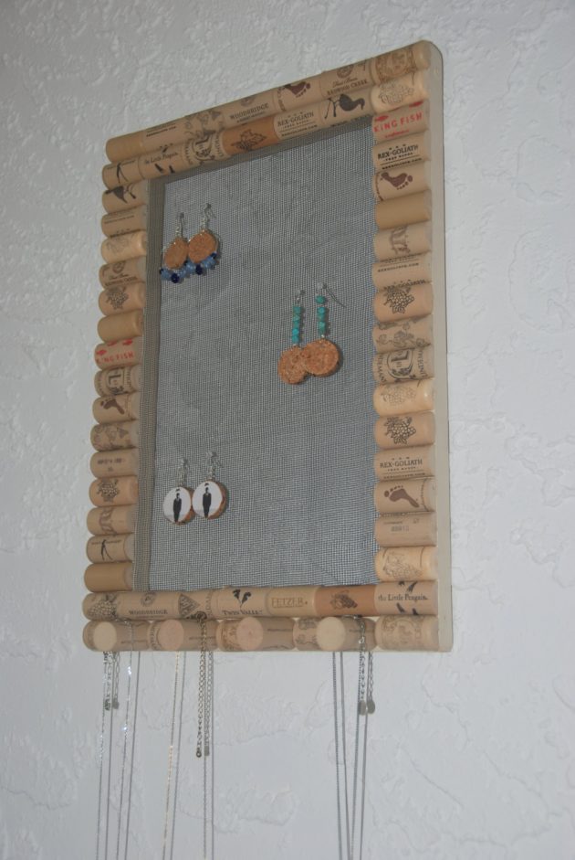 8. Or use the wine corks in combination with fabric to help you store and organize your jewelry