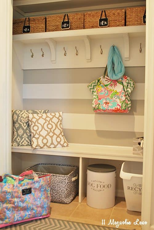 10. Use a DIY laundry basket corner as stacking recycle containers
