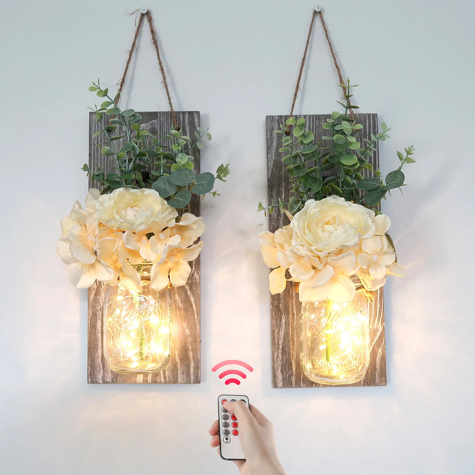14. Hanging Mason Jar Sconces with Eucalyptus Greenery