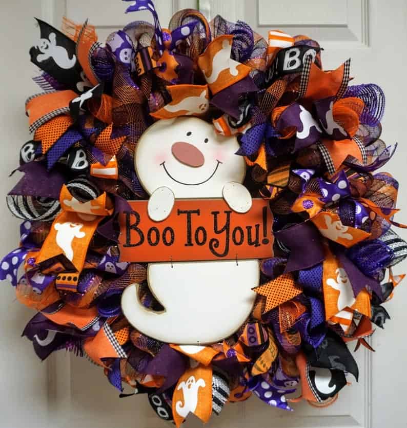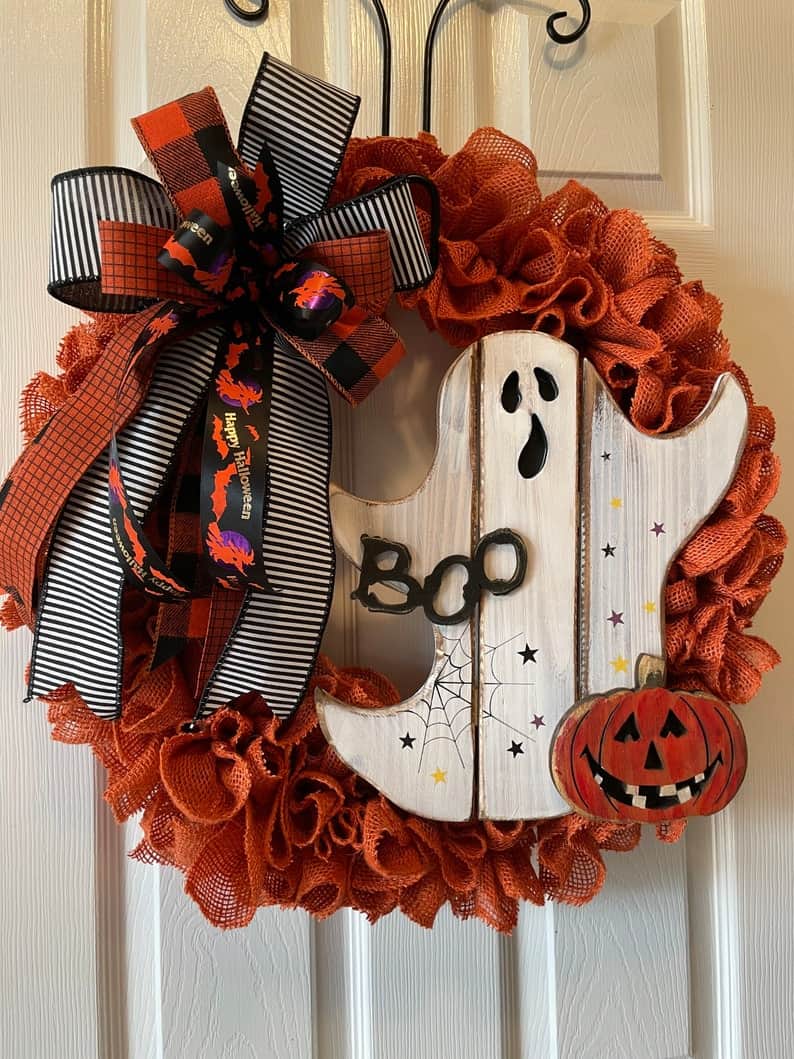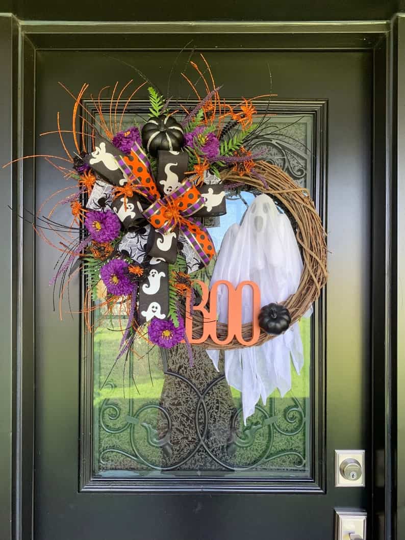 15. Halloween Whimsical Wreath with Ghost